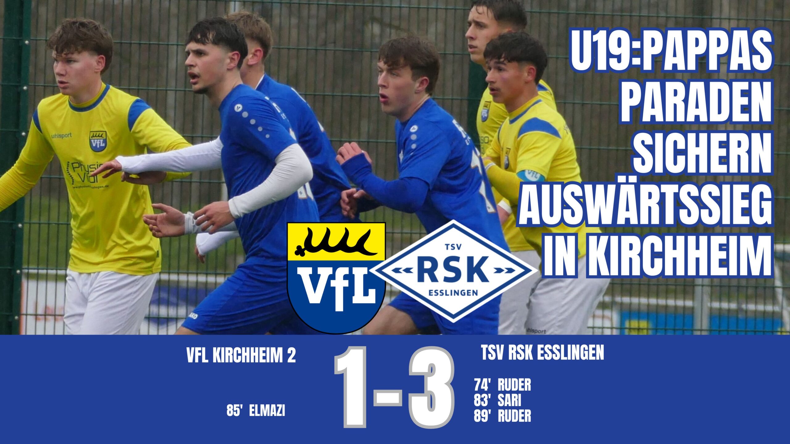 Fazit: Ein kämpferisch starker TSV RSK Esslingen bezwingt eine technisch starke Kirchheimer Mannschaft in einem intensiven Auswärtsspiel. Dank großer Moral, einem überragenden Torhüter und effizienter Chancenverwertung in der Schlussphase verteidigen die A-Junioren verdient die Tabellenführung zur Osterpause.