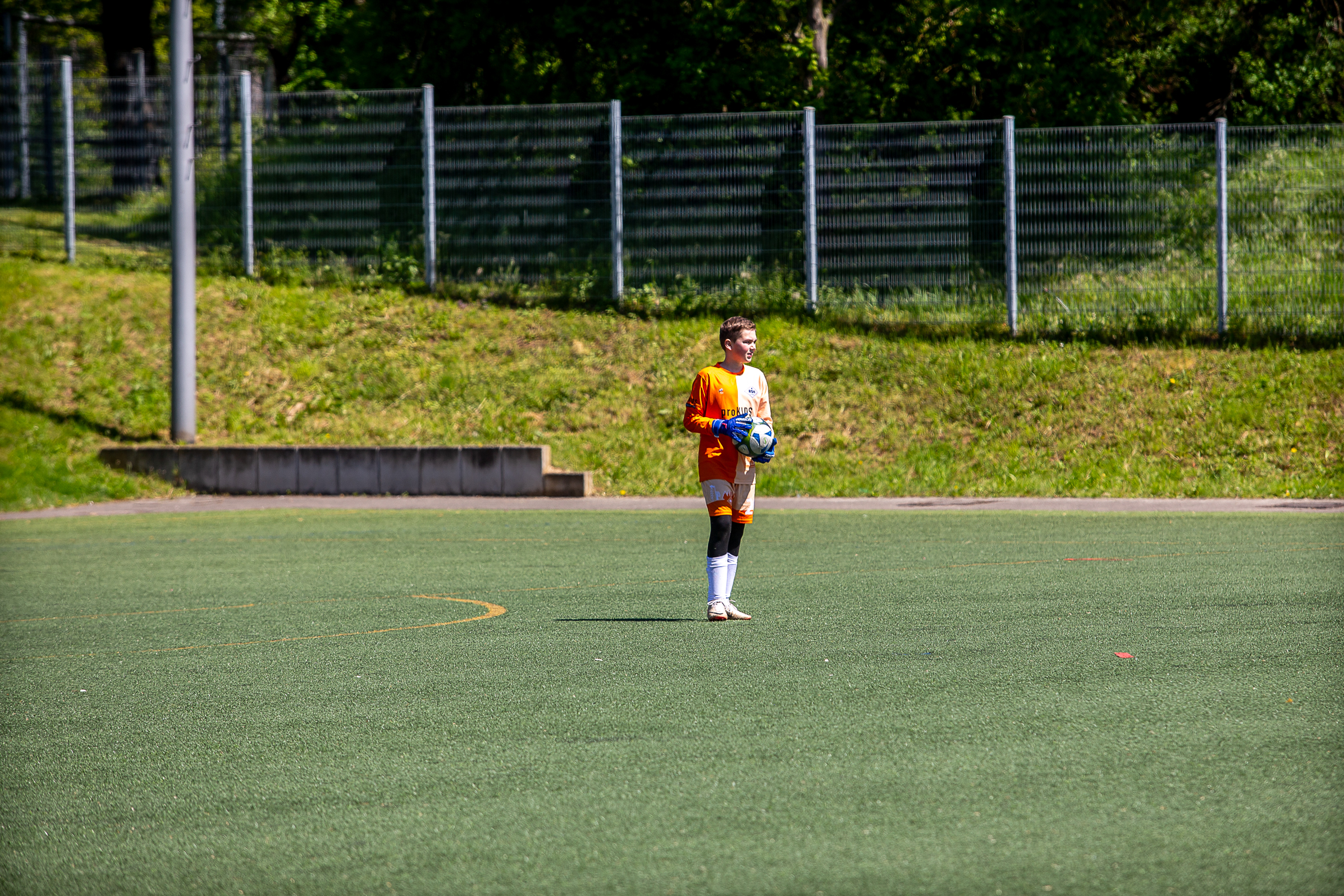 Die ersten Minuten tasteten sich die beiden Mannschaften gegenseitig ab. Ruit war es dann, die die erste Chance des Spiels mit einem Lattenkracher hatten. Dieser war aber auch das Signal an unsere Jungs aufzuwachen und konzentriert und fokussiert zu spielen. Ein Pass von Lenny Bischoff wurde von Hannes Tietz angenommen, aber leider vom Gegner geblockt. Joel Rust schoss dann im Nachschuss leider am Tor vorbei. Ein dreifacher Wechsel unserer Jungs brachte dann neuen Schwung ins Spiel und der RSK erspielte sich viele Chancen durch Nick Schlauch, Max Schmitt und Steven Widmayer. Diese gingen leider am Tor vorbei oder wurden vom Torwart des TB Ruit pariert. Das Runde wollte einfach nicht ins Eckige und so hieß es zur Halbzeit 0:0, obwohl die Mannschaft des RSK deutlich mehr Spielanteile und Chancen hatte als der Gegner.
