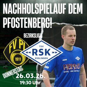 RSK gewinnt Nachholspiel auf dem Pfostenberg Nach dem Sieg am vergangenen Wochenende war das klare Ziel, erneut drei Punkte einzufahren und wieder in die Erfolgsspur zu finden. Der Gegner FV Plochingen hingegen steckt im Tabellenkeller und stand entsprechend unter Druck, dringend punkten zu müssen. Für den RSK war daher von Beginn an wichtig, mit der …